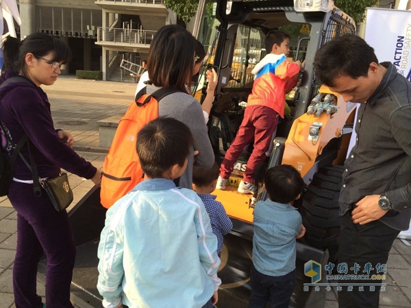 展臺(tái)上除了StralisHi-Way重卡之外,凱斯工程機(jī)械公司展示了一臺(tái)小型推土機(jī),別看它個(gè)頭小,但是馬力十足!這臺(tái)推土機(jī)對(duì)孩子們的吸引力簡(jiǎn)直無(wú)法形容,你看排著隊(duì)挨個(gè)帶安全帽坐駕駛室的陣仗就知道了。